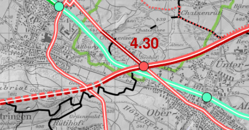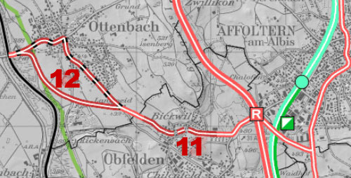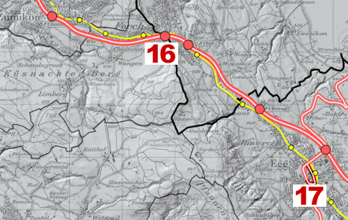 | 11 | Ortsdurchfahrt Bickwil, Obfelden | Hauptverkehrsstrasse | Tieferlegung mit Überdeckung im Kernbereich, Begleitmassnahmen | kurzfristig |