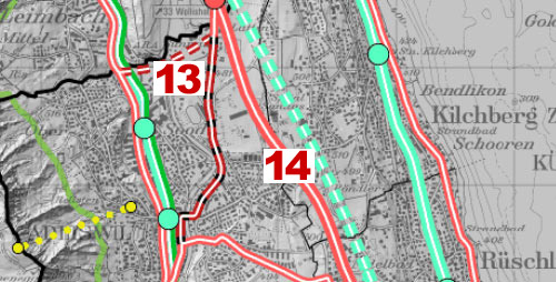 | 13 | Nordumfahrung Adliswil | Hauptverkehrsstrasse | Neubau von 2- streifigem Tunnel, Abklassierung Zürichstrasse, Begleitmassnahmen | mittel- bis langfristig |