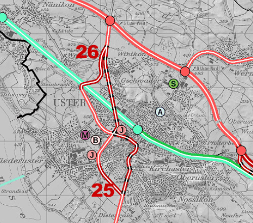| 26 | Uster-West | Hauptverkehrsstrasse | Neubau von 2-streifiger Strasse, abzustimmen mit Moorschutz, Abklassierung Berchtold- und Winterthurerstrasse, Begleitmassnahmen |